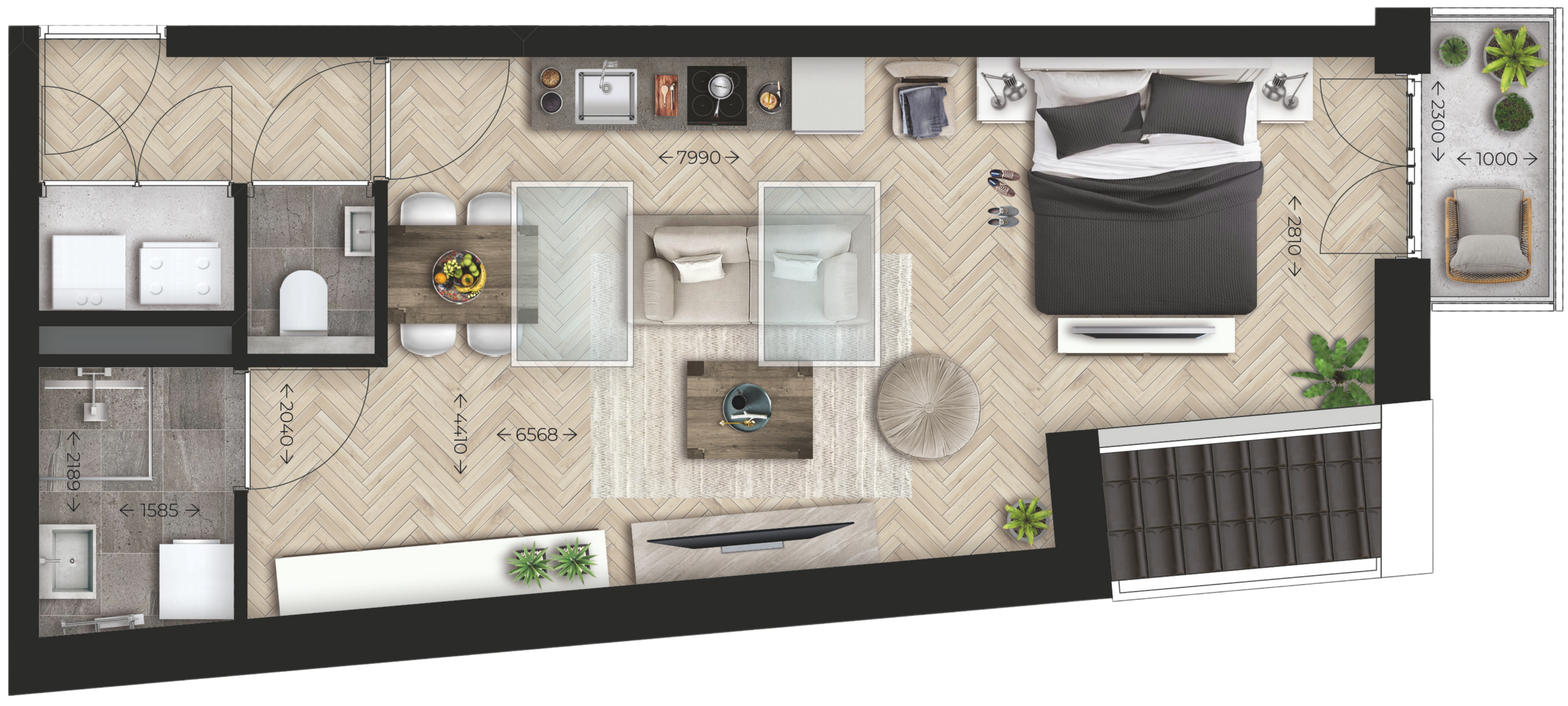 - gebruiksoppervlakte: ca. 43 m2